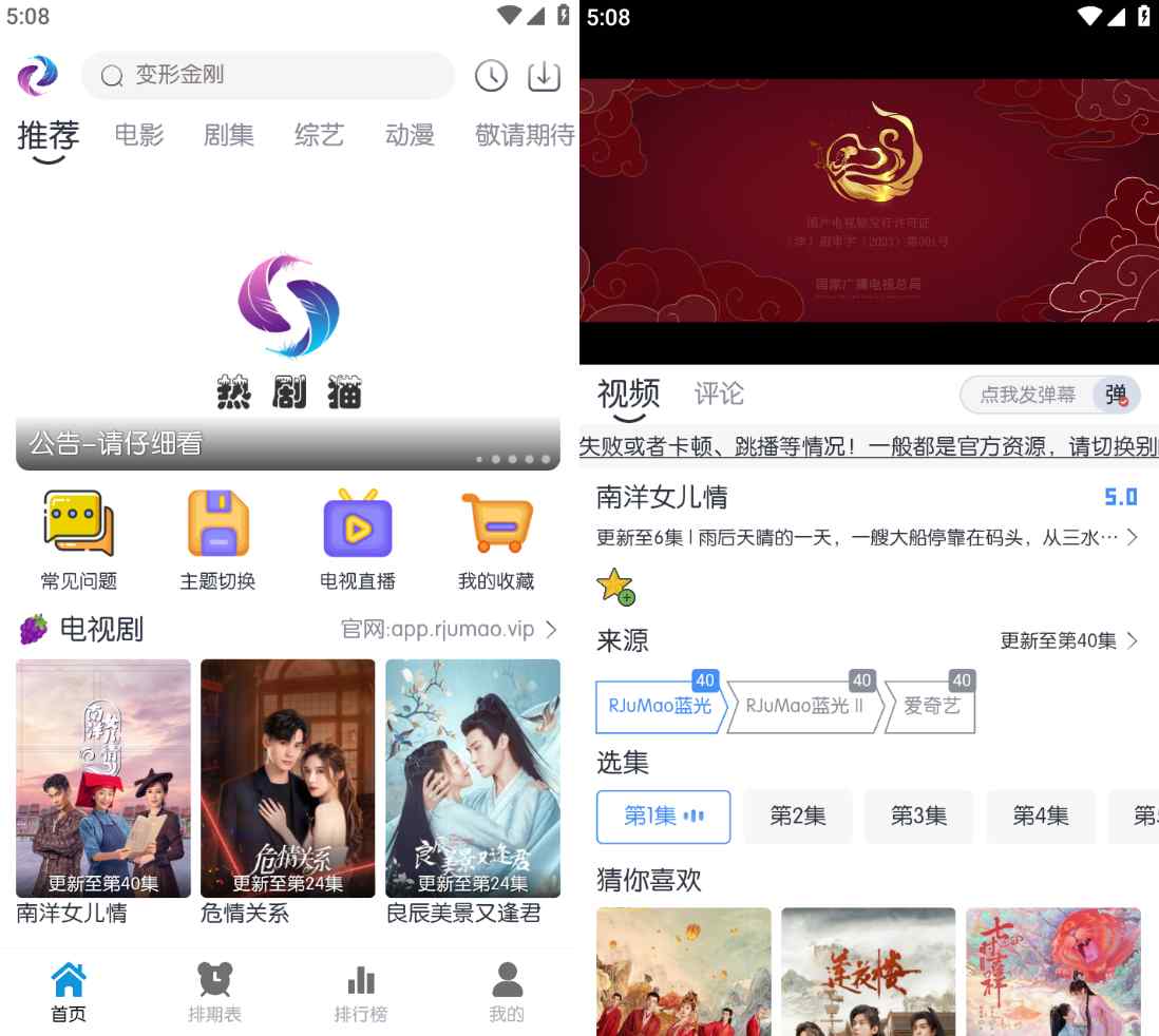 热剧猫APP手机是一款手机影视播放应用,提供海量电视剧、电影、综艺等多种类型的高清视频资源,用户可以随时随地观看热门影视作品,并且支持在线观看和离线下载,喜欢的小伙伴快下载体验吧!