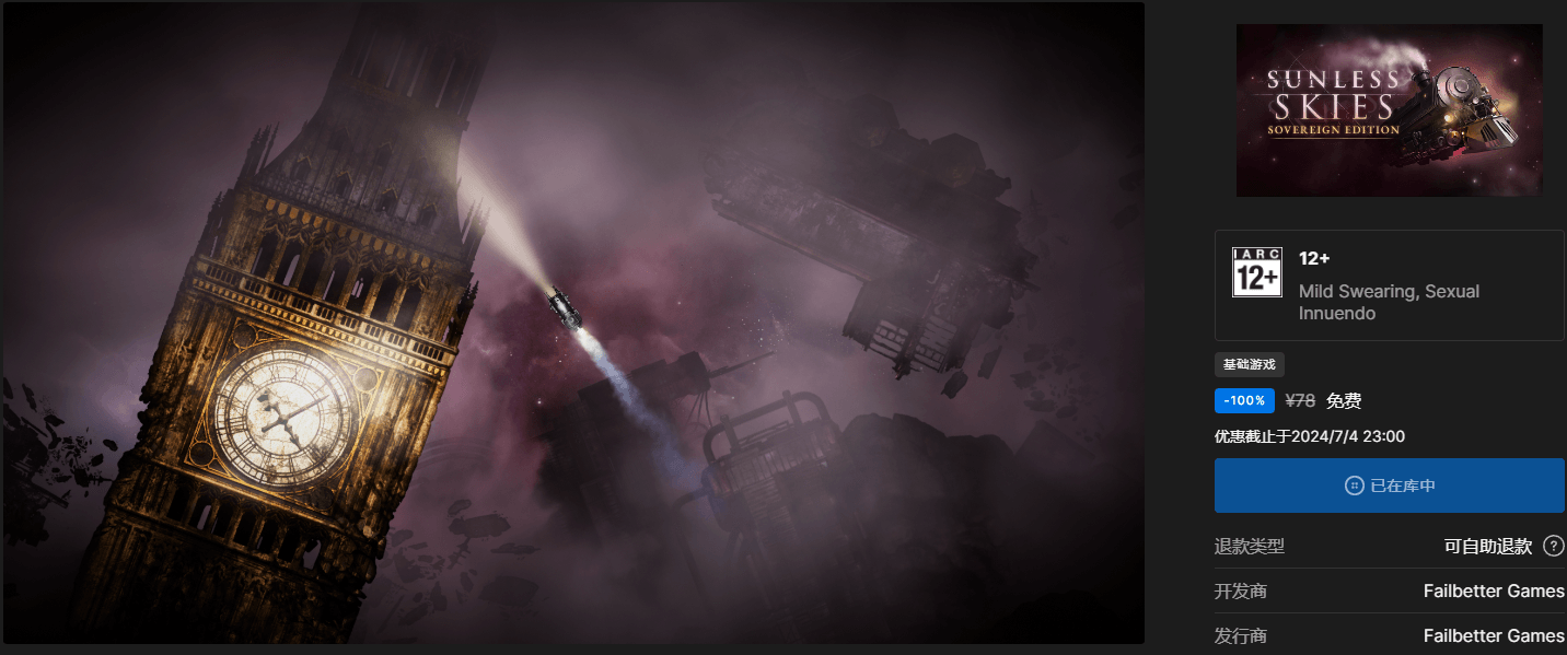 领取地址:https://store.epicgames.com/zh-CN/p/sunless-skies-bb4947